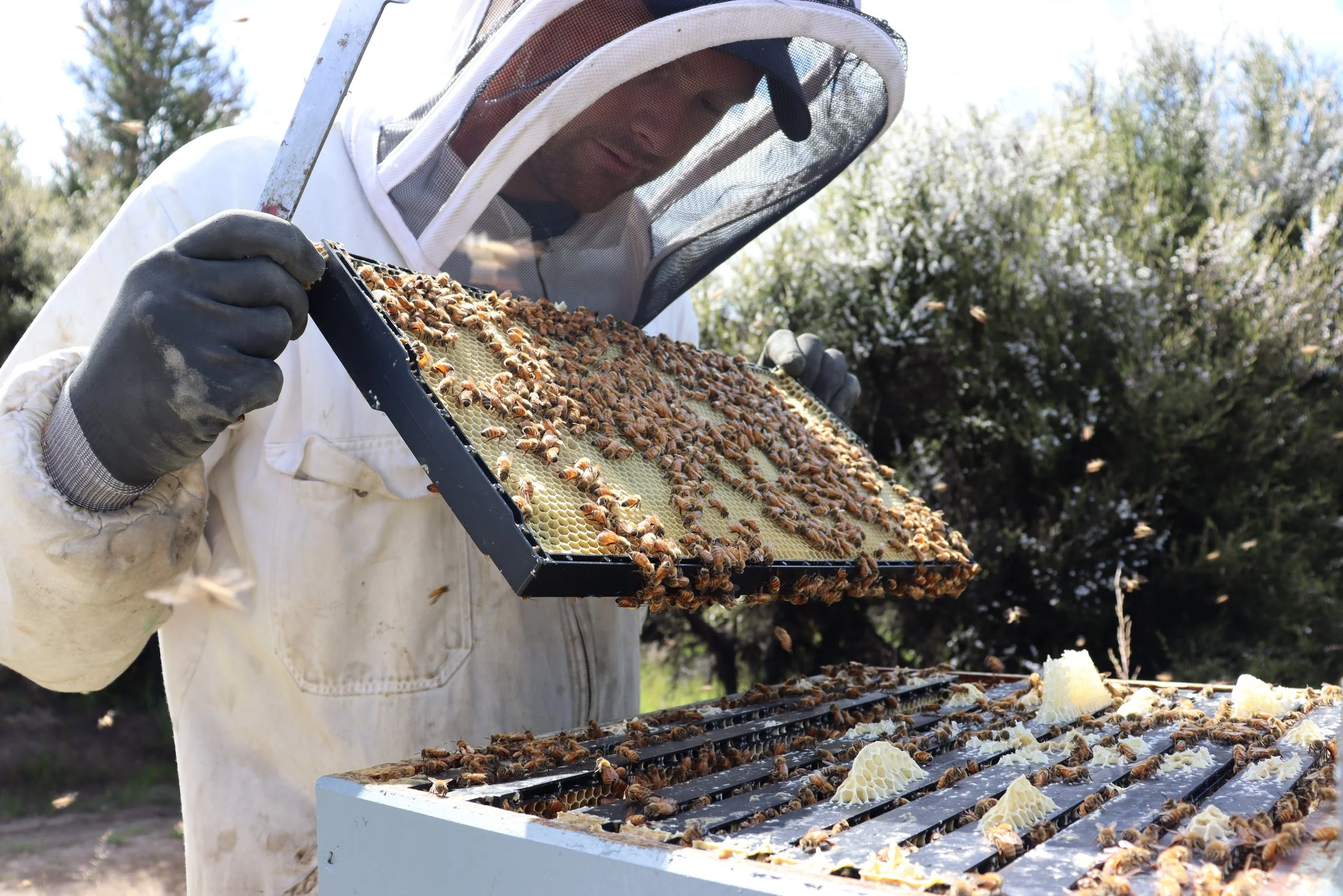Our beekeeping philosophy prioritises colony strength, natural behaviour, and minimal stress.We avoid over-handling, chemical shortcuts, and overcrowding - practices that compromise bee health. Instead, we follow a slow, nature-led approach that mirrors what leading scientific research shows: bee wellbeing directly affects Manuka honey quality and potency.